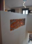 Ручная роспись стеклянной поверхности межкомнатной перегородки создает своеобразную «игру» цветов и переливов в комнате, подчеркивает изысканный стиль убранства, скрывает посторонние взгляды, притягивает взгляды гостей и создает ощущение уюта. Перегородки или проемы, расписанные ручной росписью, выполняют функцию зонирования или разделения комнаты.