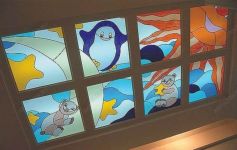 Детская. Яркий интерьер детской комнаты позволяет использовать красочные и глубокие цвета для оформления потолка. Но в то же время фацетный витраж для потолка детской комнаты должен быть таким, чтобы световые лучи не давали большое количество бликов. Для этого подойдут односторонние фацеты разных конфигураций.
