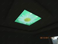 Любой потолок с витражом выигрывает при наличии подсветки. Не все лампы подходят для этой цели, кроме того, существуют некоторые нюансы. Так, неоновые трубки нельзя размещать вблизи от металлических деталей витража, а лампы дневного света обеспечивают наиболее яркую подсветку.